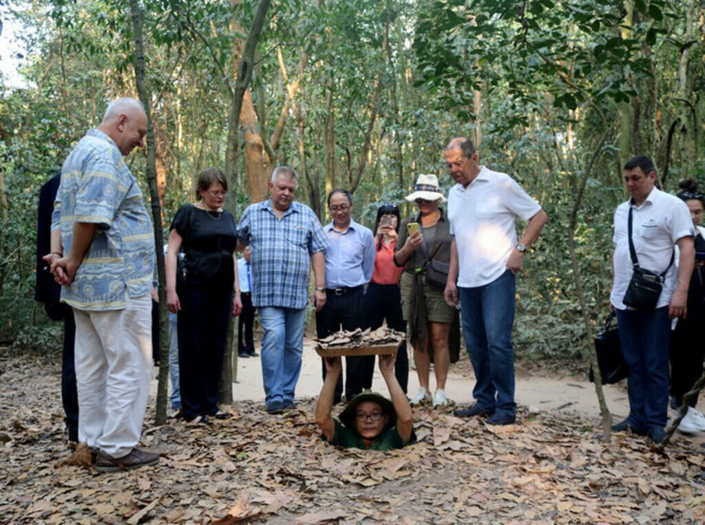 | Des touristes visitent les tunnels de Cu Chi, à Hô Chi Minh-Ville. |