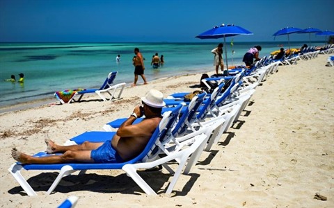 | Des touristes sur une plage de Cayo Blanco, le 5 mai à Varadero, à Cuba. |