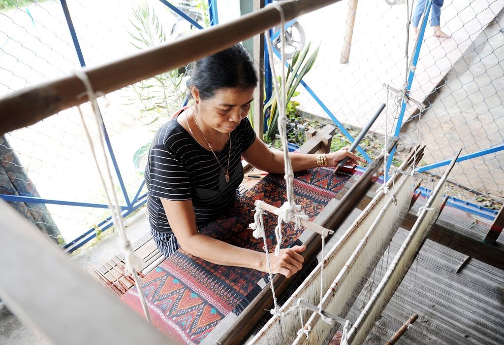 | L'artisane Neàng Samon a du talent dans le tissage de brocart, produit typique du peuple Khmer, vivant dans la commune de Van Giao, district de Tinh Biên, province d'An Giang. |