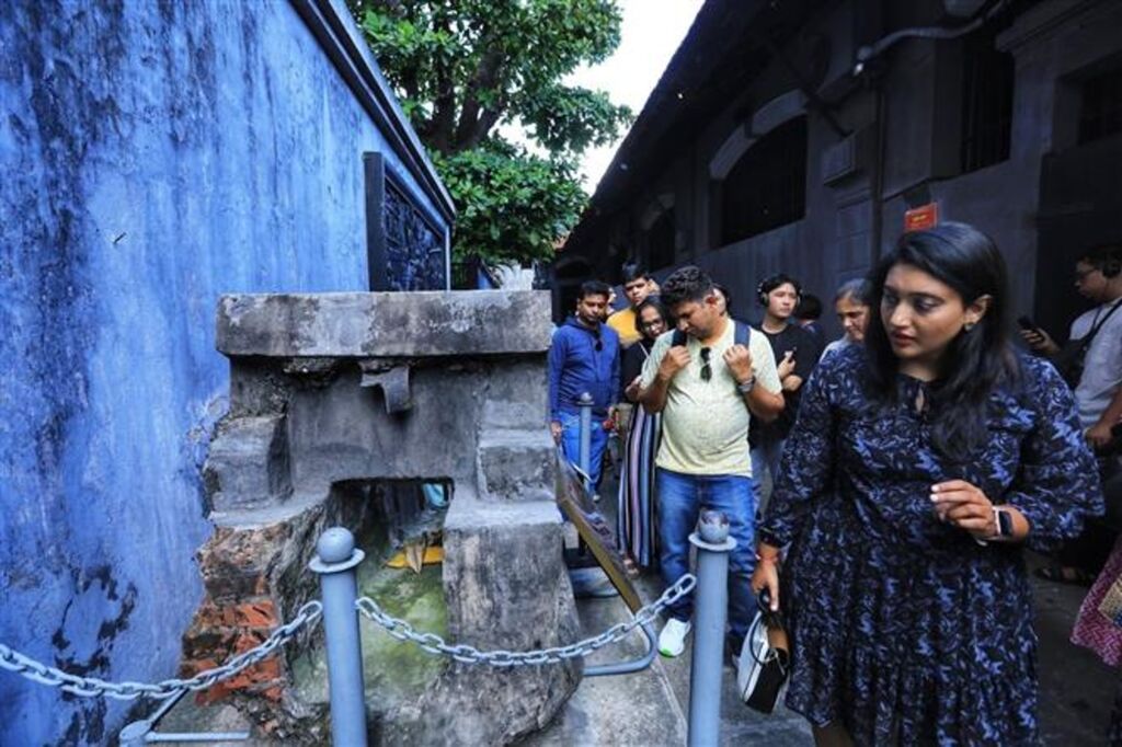 | Des touristes étrangers visitant la Maison centrale à Hanoï. |