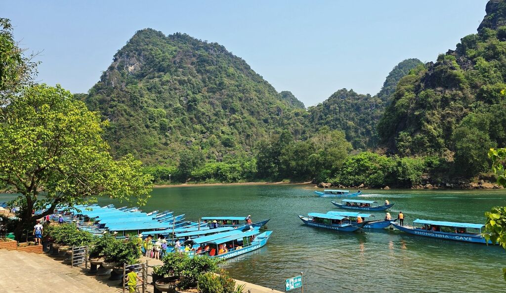 | Le quai du Centre touristique Phong Nha - Ke Bàng (Quang Binh) est animé par des activités d'accueil des touristes. |