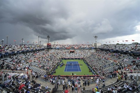 | Vue sur le court central de l'IGA Stadium de Montréal lors de la Rogers Cup 2019. |