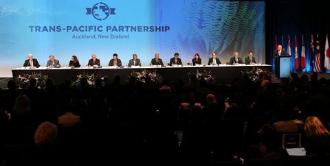 | Signature de l’Accord de partenariat transpacifique (TPP), le 4 février en Nouvelle-Zélande. |