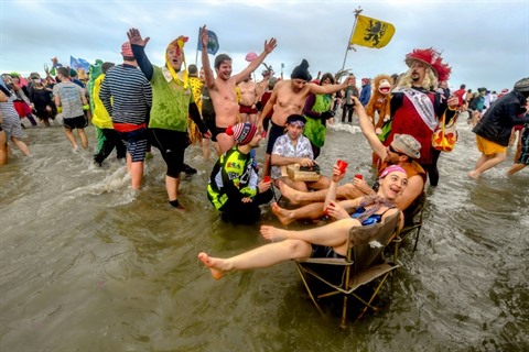 Pour beaucoup des baigneurs, cette trempette sert "d'entraînement" au célèbre carnaval de Dunkerque, l'un des principaux de France.