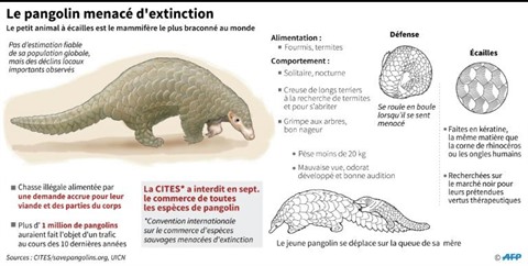 Malgré l'interdiction du commerce de pangolin, animal protégé par la Convention sur le commerce des espèces sauvages menacées (Cites), les captures du petit mammifère aux écailles très prisées se multiplient dans les forêts d'Asie et d'Afrique. Le trafic est alimenté en particulier par la demande en Chine, où le pangolin est paré de nombreuses vertus curatives par la médecine traditionnelle.