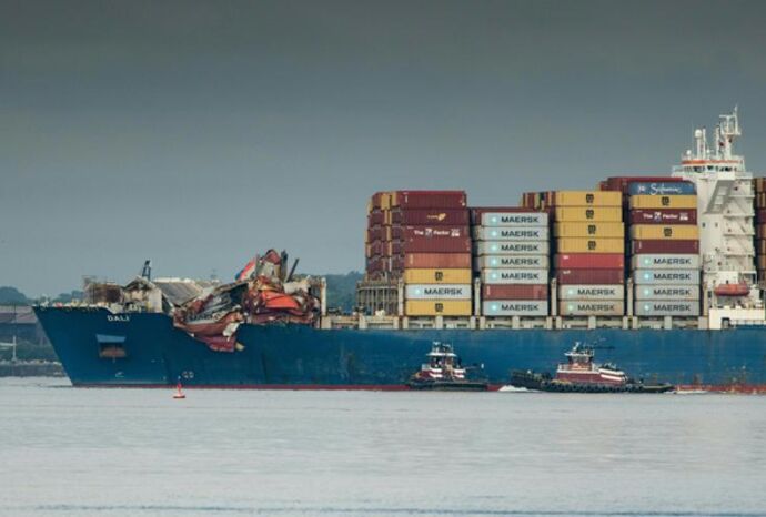 >> Le porte-conteneurs du pont de Baltimore renfloué et remorqué
