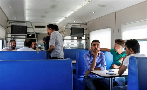 Dans le wagon-bar où un écran affiche la température extérieure (43 degrés) et la vitesse du train, Sinan Majid, 28 ans, entre avec des cartons remplis dans les mains. Il a acheté à Bagdad des habits pour achalander son magasin de Fallouja.