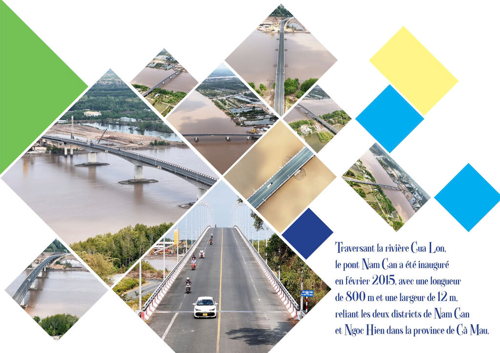 Depuis son point de départ à Pác Bó (province de Cao Bằng), la route Hô Chí Minh a permis de relier depuis des années toutes les régions du pays, du nord au sud, jusqu'à l'extrême pointe de Cà Mau, dans la commune de Dât Mui, district de Ngoc Hiên, province de Cà Mau. Le transport routier est désormais fluide, et les habitants du delta du Mékong se sentent fiers de leur terre d'eau, où des ponts historiques et des routes principales ont été créés pour relier les rives du pays.