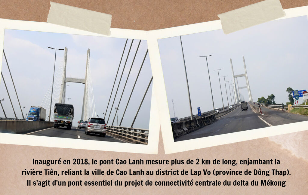 À Lâp Vo, un autre exemple de transformation a eu lieu, grâce à l'achèvement du pont Cao Lanh en 2018. Avant sa construction, les habitants devaient prendre le ferry pour traverser la rivière Tiên, un processus long et souvent pénible. Aujourd'hui, avec le pont Cao Lanh, la traversée est devenue beaucoup plus rapide et sans frais.