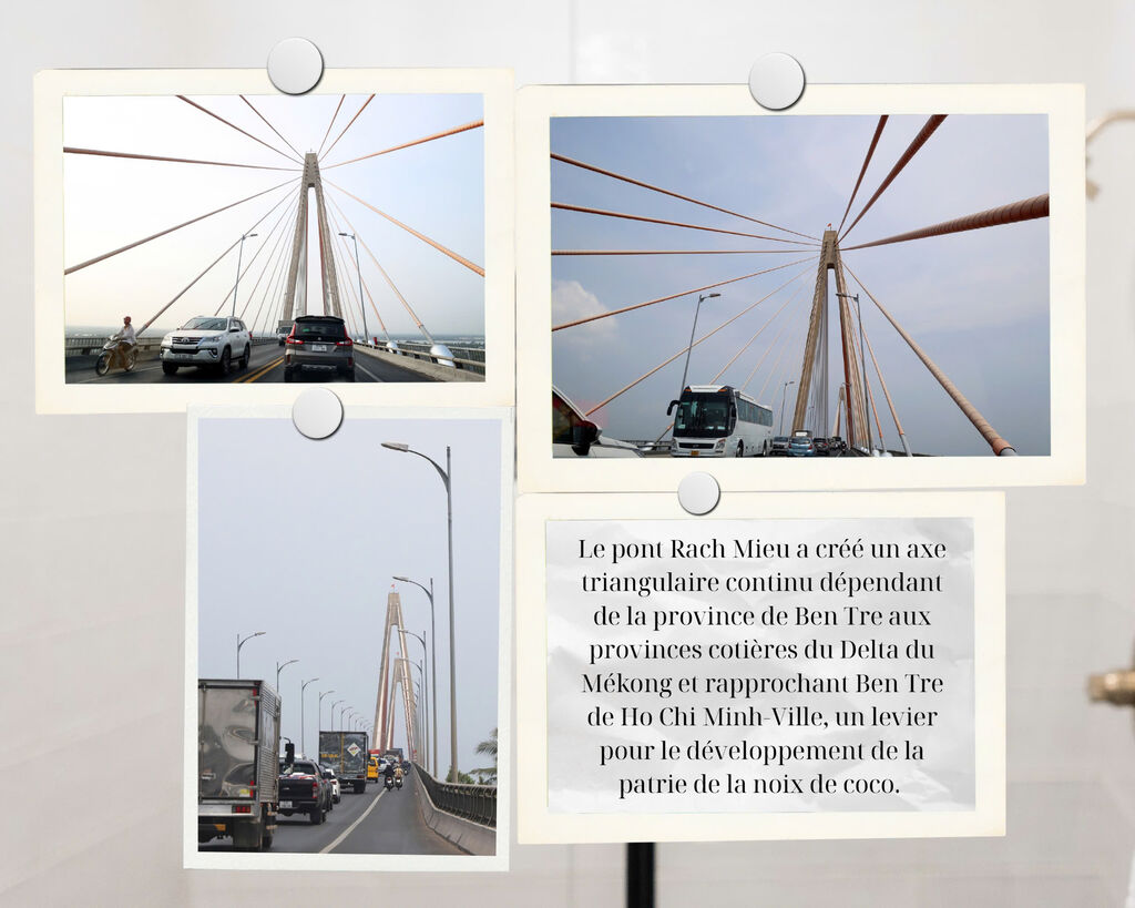 Les ponts, comme My Thuân et Rach Miêu, ont grandement facilité l'intégration de la région du Delta du Mékong au reste du Vietnam. Le pont Rach Miêu, inauguré en 2009, a relié les provinces de Tiên Giang et Bên Tre, favorisant ainsi les échanges économiques entre ces régions et Hô Chi Minh-Ville.
