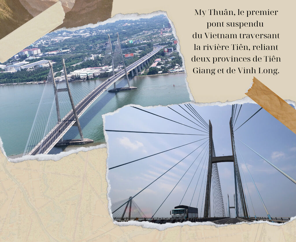 Le 21 mai 2000 a marqué un tournant historique avec l'inauguration du pont My Thuân, le premier pont suspendu du Vietnam traversant la rivière Tiên, reliant les provinces de Tiên Giang et Vinh Long. Ce fut une grande célébration pour les habitants du Delta du Mékong, qui étaient auparavant contraints de prendre plusieurs ferries pour se rendre à Hô Chi Minh-Ville.