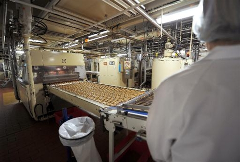 | Une employée au travail dans une biscuiterie le 4 octobre 2011 à Nieppe. |
