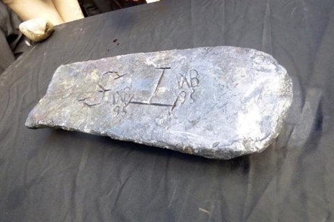 | Photographie prise le 7 mai du lingot d'argent de 45 kilos découvert au large de la petite îde Sainte-Marie, au Nord-Est de Madagascar. |