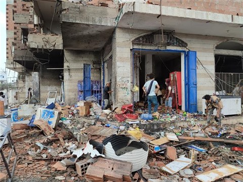 | Lieux d'une explosion d'une bombe près d'Aden, au Yémen, en octobre 2021. |