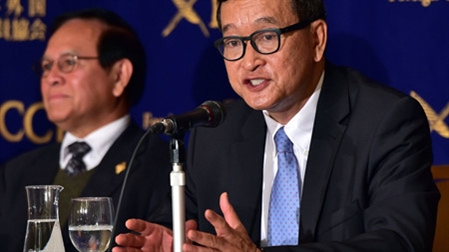 Le président du CNRP, de nationalité cambodgienne et française, a quitté le Cambodge début novembre 2015. Il vit actuellement en exil à l’étranger et fait l'objet de deux mandats d'arrêt pour divers chefs d'accusation.
