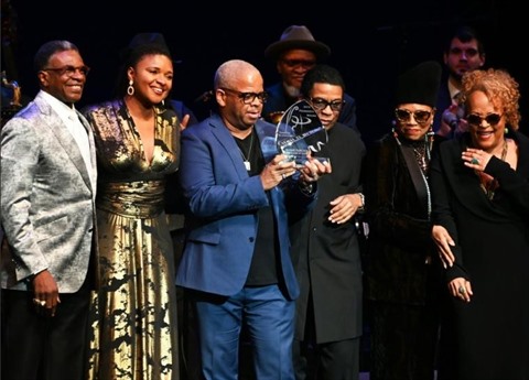 | Le trompettiste Terence Blanchard (centre) reçoit un prix à Washington, le 4 décembre 2019. |