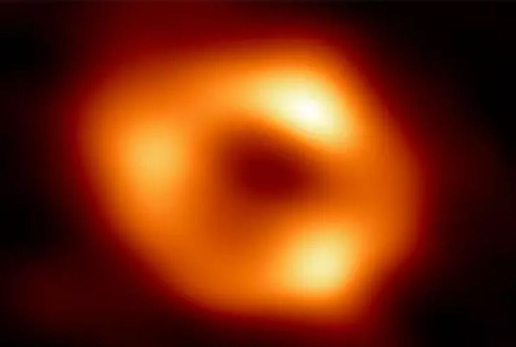 | Image du trou noir super massif au cœur de notre galaxie, Sagittarius A*, dévoilée par l'Observatoire sud-européen (ESO) le 12 mai 2022. |