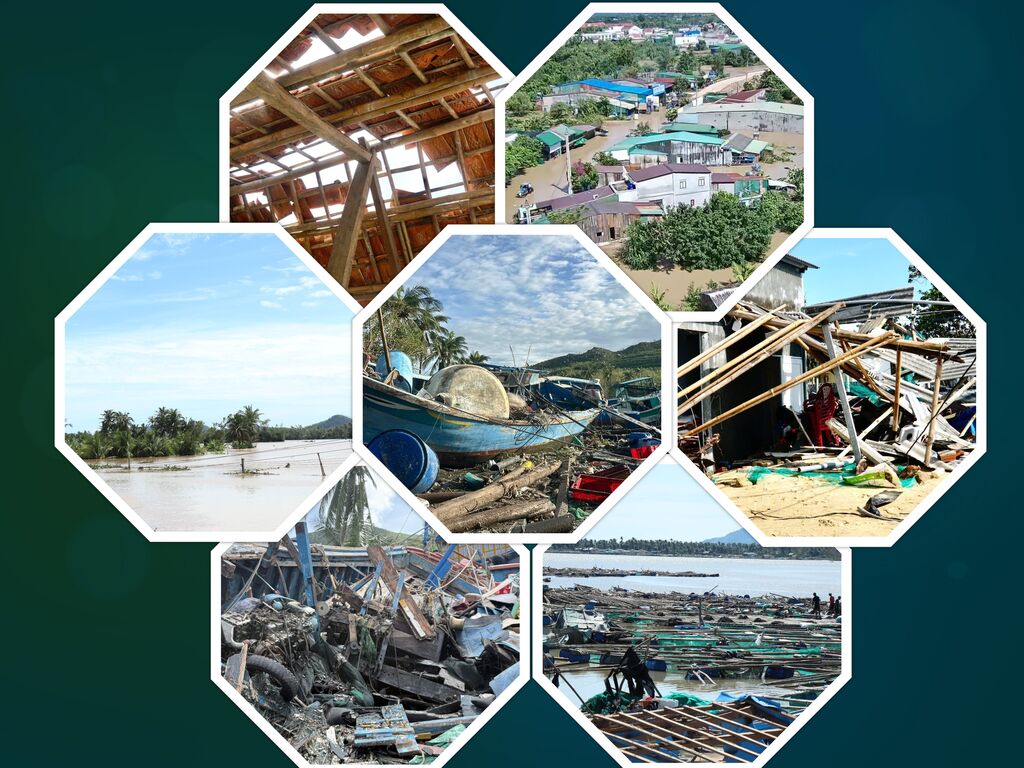Selon le Département de gestion des digues et de prévention des catastrophes, les intempéries ont entraîné, jusqu'à 8h00 le 8 novembre, l'effondrement de 245 maisons et endommagé plus de 26.200 habitations, soit une hausse de près de 8.700 unités par rapport à la veille. Le bilan humain s'élève à 5 morts, 3 disparus et 17 blessés. Des milliers d'hectares de rizières, cultures, vergers et plantations industrielles ont été détruits, ainsi que plus de 54.000 cages aquacoles et 65 bateaux.