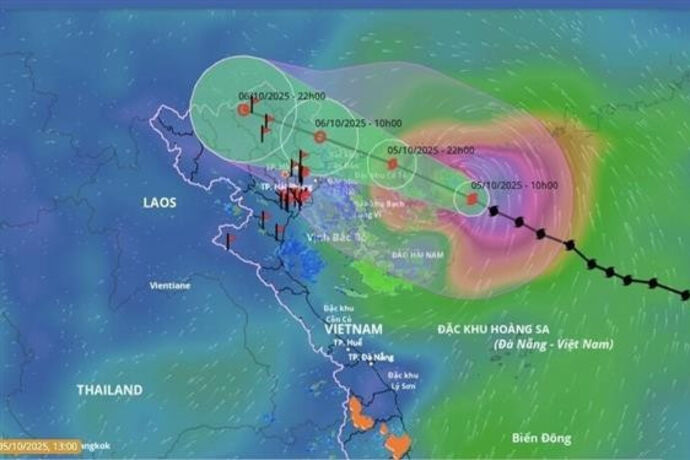 Au Vietnam, sous l’influence du typhon, des vents forts ont été enregistrés à Bach Long Vi (force 8, rafales 9), Cô Tô (force 6, rafales 8), ainsi que dans les zones côtières de Quang Ninh et Hai Phong (rafales de force 6-7).