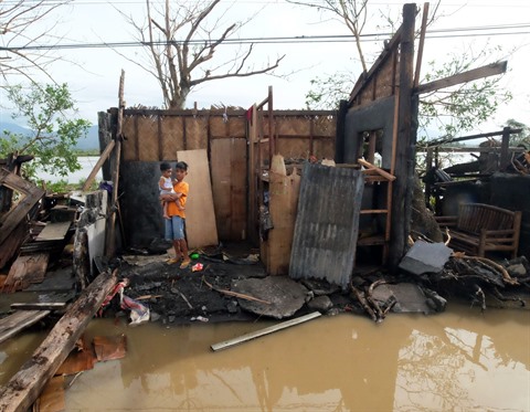 | Une maison détruite par le typhon Nock-Ten dans la province d'Albay, le 26 décembre. |
