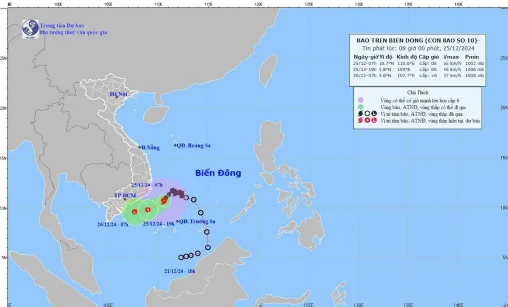 À 10h00, Pabuk se déplaçait dans les eaux au large de la côte de Khanh Hoa à Binh Thuân, avec des vents de 50 à 61 km/h près de son centre.
