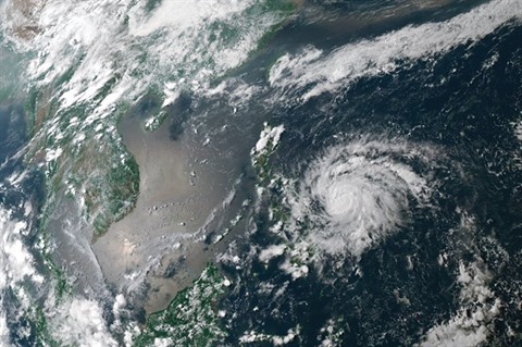 | Une image satellite montrant le typhon Vongfong dans l'Ouest de l'océan Pacifique en direction des Philippines. |