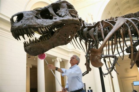 | Le géologiste Bill Simpson nettoie Sue, un Tyrannosaurus Rex, le 12 novembre 2013 à Chicago, aux États-Unis. |