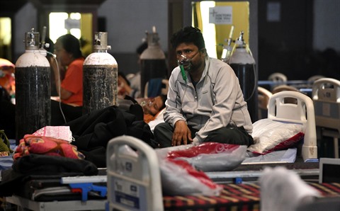 | Un patient atteint du COVID-19 en centre de soins à New Delhi, le 8 mai. |