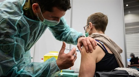 | Un soldat suisse administre le vaccin Moderna contre le COVID-19 à Delemont, dans le Nord de la Suisse, le 14 décembre. |