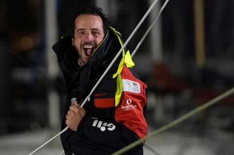 Le skipper français Louis Burton à l'arrivée du Vendée Globe, aux Sables d'Olonne, le 28 janvier. Photo : AFP/VNA/CVN |
