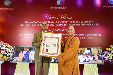 Le vénérable Thich Duc Thiên a exprimé son honneur de recevoir la Padma Shri. Il s’est engagé à redoubler d’efforts pour contribuer à l’amitié entre les deux nations.