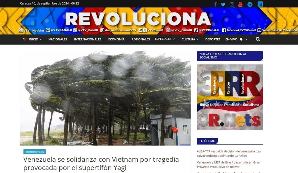 Ces derniers jours, les médias vénézuéliens et latino-américains ont continuellement couvert le super typhon Yagi, considéré comme le plus puissant typhon frappant le Nord du Vietnam au cours de ces 30 dernières années, soulignant les efforts du gouvernement et du peuple vietnamiens pour faire face à ses conséquences directes et indirectes.