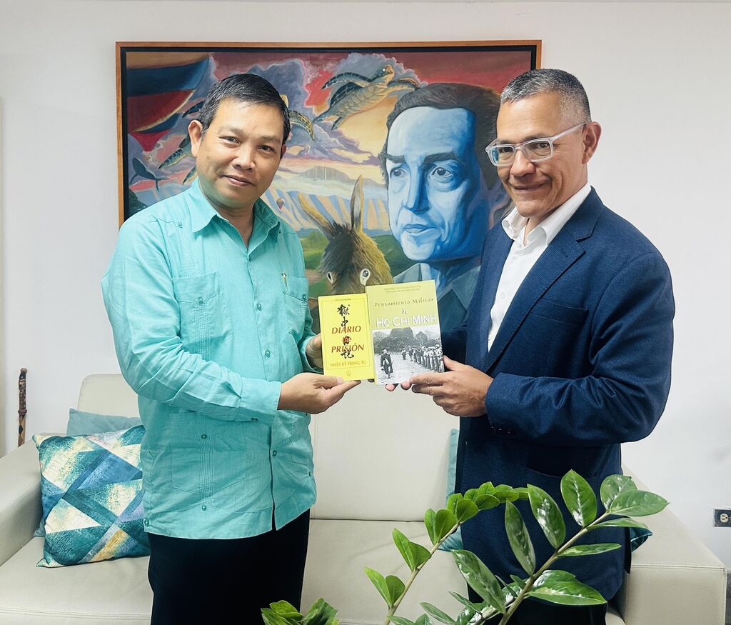 Lors de la rencontre, l'ambassadeur vietnamien a offert au ministre vénézuélien de la Culture Ernesto Villegas plusieurs œuvres représentatives du Président Hô Chi Minh, telles que Carnets de prison et Pensée militaire de Hô Chi Minh, exprimant le lien culturel et le partage des valeurs durables entre les deux nations.