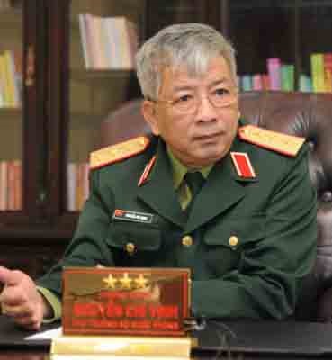 Le général de corps d’armée Nguyên Chi Vinh (gauche), vice-ministre de la Défense, et l’ambassadeur britannique au Vietnam, Gareth Ward.