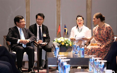 | Le vice-Premier ministre et ministre vietnamien des Affaires étrangères Pham Binh Minh et la princesse héritière Victoria de Suède. |