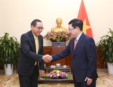 | Le vice-Premier ministre Pham Binh Minh (droite) et l'ambassadeur thaïlandais Tanee Sangrat, le 24 juin à Hanoï. |