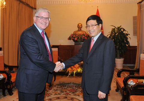 | Le vice-PM vietnamien, Pham Binh Minh (droite), et Craig Chittick, nouvel ambassadeur de l’Australie au Vietnam. |