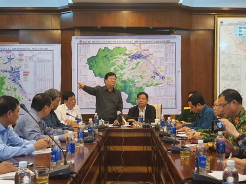 | Le vice-Premier ministre Trinh Dinh Dung, chef de la Direction centrale contre les catastrophes naturelles, a présidé, mardi soir, 27 octobre, à Dà Nang (Centre), une réunion de la commission en charge de gérer des conséquences du typhon Molave. |