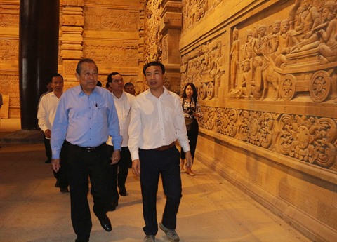 | Le vice-Premier ministre permanent Truong Hoà Binh (gauche) inspecte les préparatifs du Vesak 2019. |