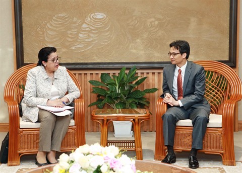 | Le vice-Premier ministre Vu Duc Dam et la directrice générale adjointe de l'AIEA, Najat Mokhtar. |