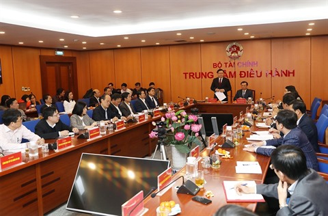 | Le vice-Premier ministre Vuong Dinh Huê dirige la vidéoconférence sur le budget de l'État. |