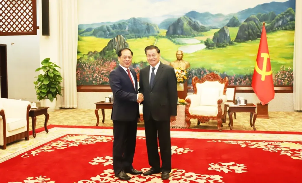 Lors de son entrevue avec le secrétaire général et président Thongloun Sisoulith, Bùi Thanh Son a rendu compte au dirigeant lao des résultats de la consultation politique avec le ministre lao des Affaires étrangères Thongsavanh Phomvihane le 16 décembre. Il a noté avec plaisir les développements positifs de la coopération bilatérale dans divers domaines, reflétés dans la réunion du secrétaire général du Parti communiste du Vietnam, Tô Lâm, avec le secrétaire général Thongloun Sisoulith, et diverses rencontres de haut niveau.