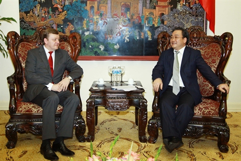 | Le vice-Premier ministre Hoàng Trung Hai (droite) a reçu, le 5 novembre à Hanoi, le vice-ministre biélorusse des Affaires étrangères, Sergey Aleinik. |