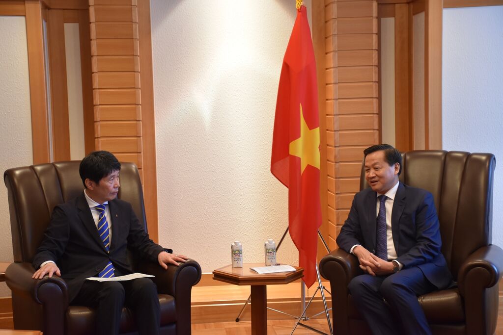 | Rencontre entre le vice-Premier ministre Lê Minh Khai (droite) et le directeur général adjoint du groupe Idemitsu, Sakai Noriaki. |