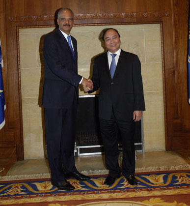 | Rencontre entre le vice-Premier ministre Nguyên Xuân Phuc (droite) et le secrétaire à la Justice, Eric Holder, aux États-Unis. |
