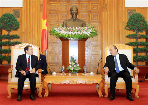 | Le vice-Premier ministre Nguyên Xuân Phuc (droite) et le secrétaire du Comité provincial du Parti de Laos, le maire Khampheng Saysompheng, le 27 décembre à Hanoi. |