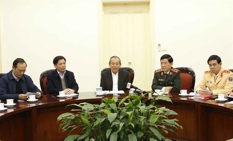 | Le vice-Premier ministre permanent Truong Hoà Binh (centre) lors de la réunion du Comité national de la sécurité de la circulation, le 17 janvier à Hanoï. |