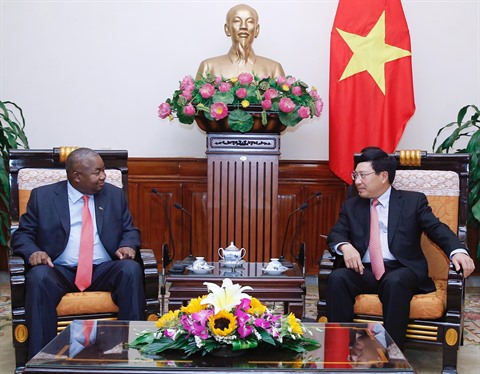 | Le vice-PM et ministre des Affaires étrangères, Pham Binh Minh (droite), et le nouvel ambassadeur du Mozambique, Leonardo Rosario Manuel Pene. |