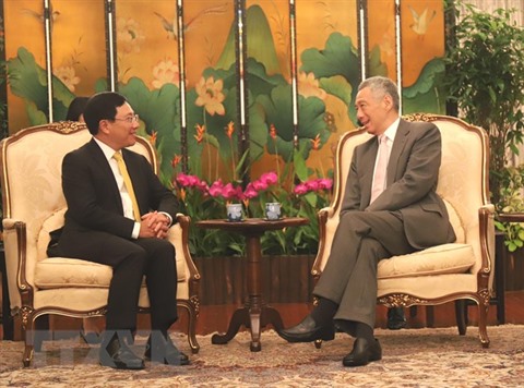 Lors d'une rencontre avec le Premier ministre singapourien Lee Hsien Loong, le vice-Premier ministre et ministre des Affaires étrangères Pham Binh Minh a réitéré la politique constante du Vietnam d’attacher de l'importance au partenariat stratégique entre les deux pays.