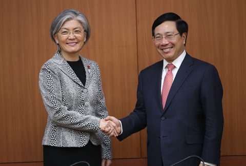Jeudi 21 décembre, le chef de la diplomatie vietnamienne s’est entretenu avec la ministre sud-coréenne des Affaires étrangères, Kang Kyung-wha.